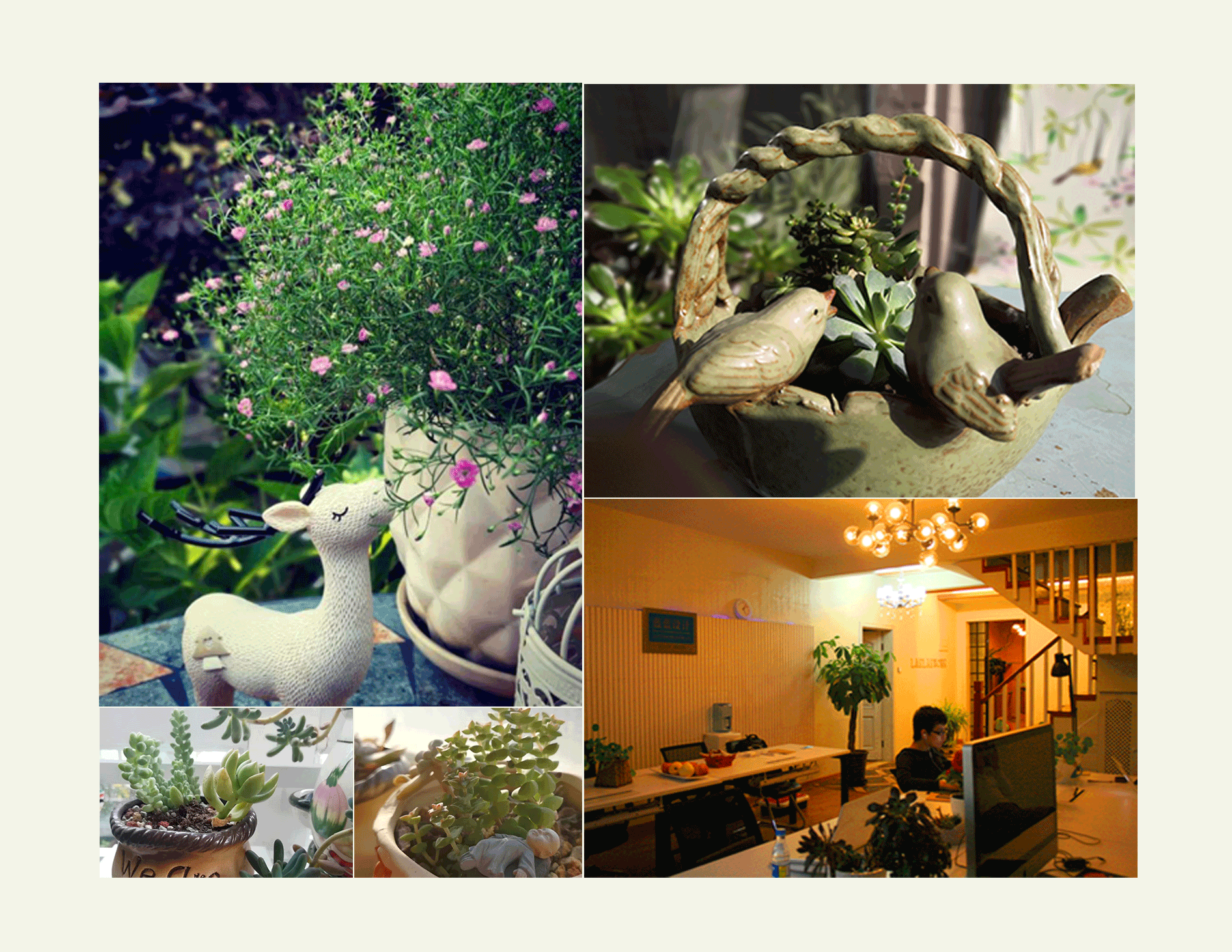 四季鮮花盛開,花草芳菲的設計環境,200多盆花花草草陪伴,同事溫文爾雅,素人的簡單生話,享受設計,享受生活!