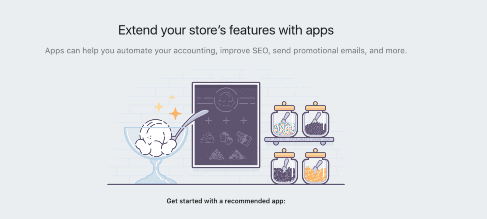 這個元素與那個元素在某刻具備相似性。如下圖所示,它不需要展示實際產品就能讓用戶理解。圖中并不是真正在討論冰激凌,而是通過插畫以比喻的方式傳遞了“正如用戶能夠按口味喜好用配料調制成個人專屬的冰激凌一樣,你也能根據自己的需要為利用我們提供的服務(App)來打造你的專屬店鋪”的理念。