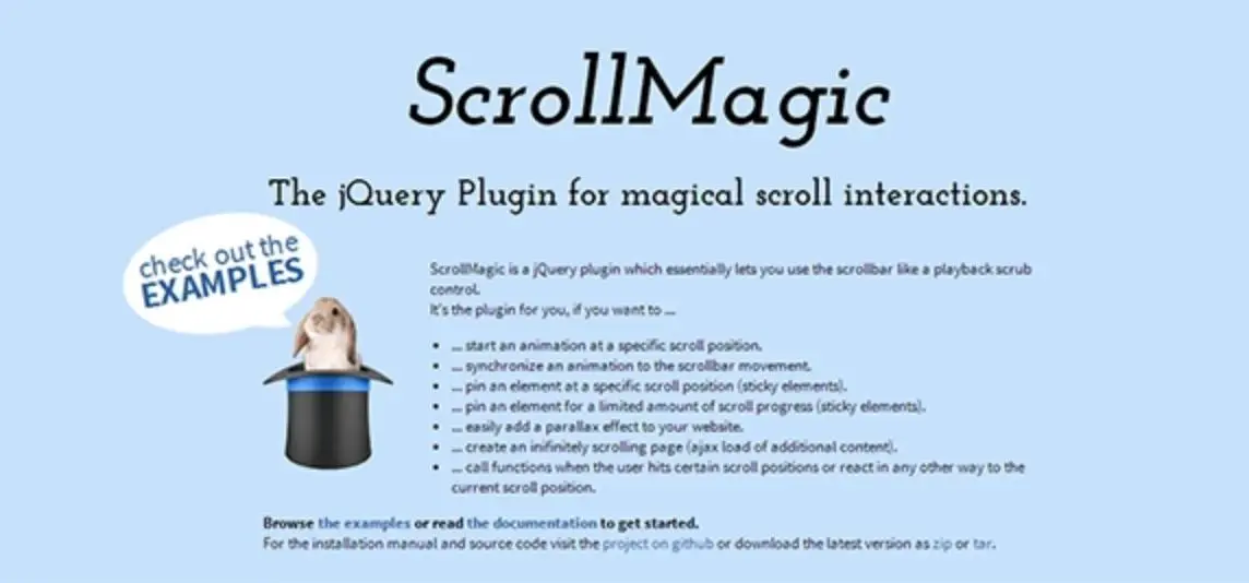 二、插件名稱:ScrollMagic 簡介:ScrollMagic是一個強大的滾動動畫插件,它能夠為網頁添加各種視差效果和動畫效果。設計師可以利用ScrollMagic創建吸引人的滾動交互效果,使用戶在瀏覽頁面時獲得更好的體驗。該插件支持多種觸發方式和動畫選項,具有良好的性能和可擴展性。