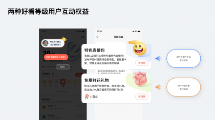 因此在精神激勵的虛擬權益上,好看平臺希望能夠打造一款有記憶點的互動方式,一方面;用戶之間的主要互動場景是評論區(qū),因此權益之一是打造符合好看人群特征的互動表情,創(chuàng)造平臺特有的互動語言來加強用戶交流;另一方面好看的內容創(chuàng)作者一般為多平臺創(chuàng)作者,需要讓創(chuàng)作者在好看平臺上感受到用戶差異,激發(fā)創(chuàng)作動力,因此也塑造了用戶等級下的另一個權益“鮮花禮物”。作者使用被打賞的鮮花可以進行流量曝光的兌換,形成了一個用戶側互動激勵與創(chuàng)作者側的良性互動。