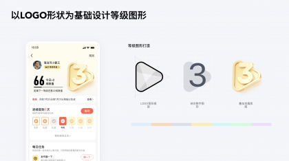 ?決定用戶動機主要有8個核心的驅動力:使命感、成就感、創(chuàng)造力、擁有感、社交性、稀缺感、好奇心、逃避心。因此利用用戶對于尊貴等級地位的追求進行等級圖標設計,以LOGO形狀為基礎設計了等級圖形,使用辨識度和認知成本較低的數字進行等級彰顯,體現(xiàn)等級的遞進,同時采用不同顏色突出1至6等級的差異,高等級添加更明顯的金屬感,營造稀有性和高貴感,同時在社交場景如“互動區(qū)”、“個人中心”等,突出用戶身份。
