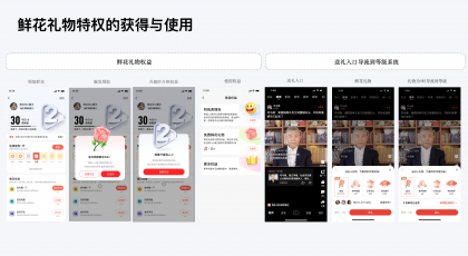 鮮花禮物特權方面:當用戶升級及完成任務的同時可領取該獎勵,我們采用用戶比較熟知的“授人鮮花,手有余香”的概念,等級越高可獲得更多鮮花,越能鼓勵作者,增進了創(chuàng)作者與忠實粉絲之間的關系。免費禮物是好看視頻的首創(chuàng),雙向促進用戶與作者激勵,后續(xù)其他平臺也進行了功能跟進。在作者的帶動下,當用戶想給作者贈送鮮花時為了獲取更多的鮮花,也能導流到任務系統(tǒng)促進等級任務的完成。