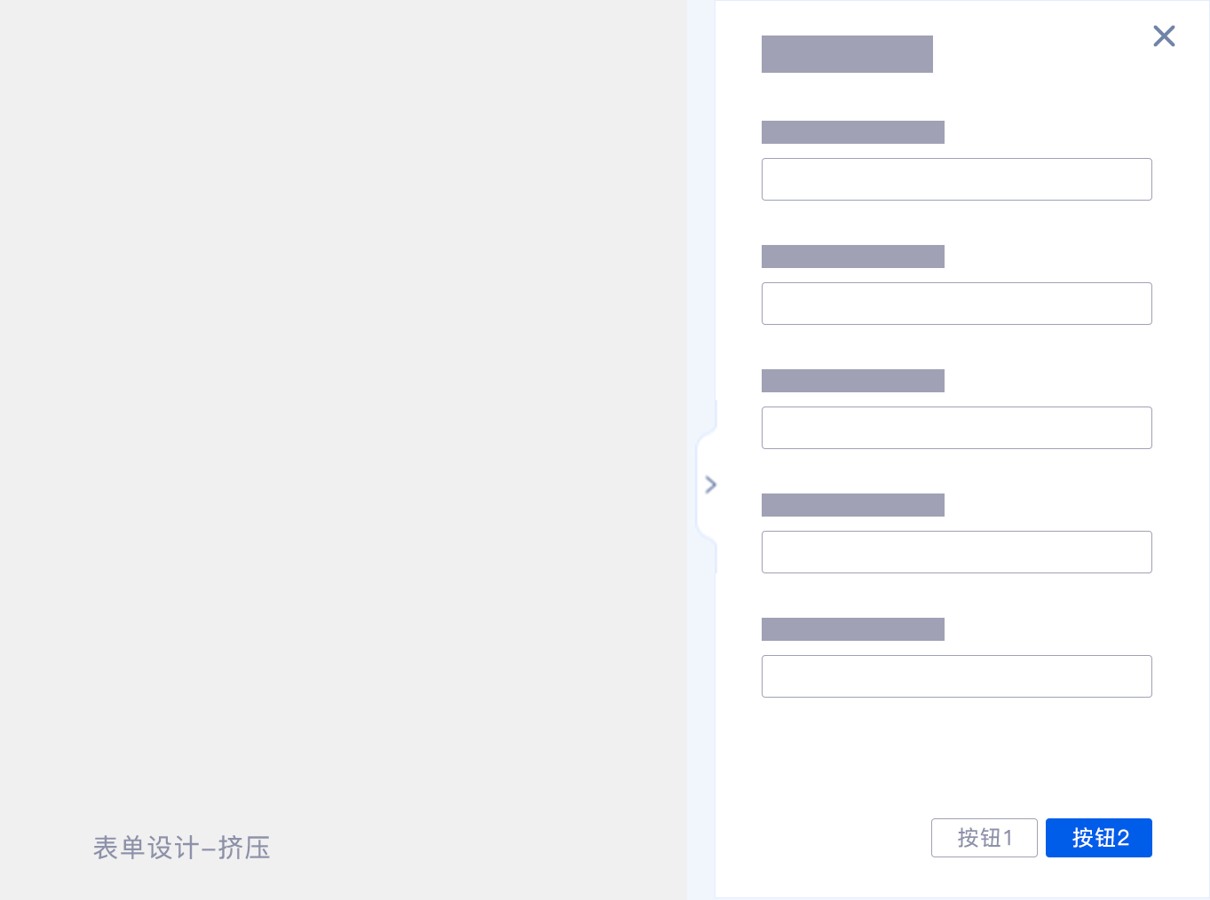 擠壓模式指的是表單信息從右側出現,將原本畫布的內容區域寬度減小,從而展示右側表單。這樣的展示方式界面需要做適配,做到畫面中的元素自動適配畫布大小,以滿足正常的閱讀和使用。