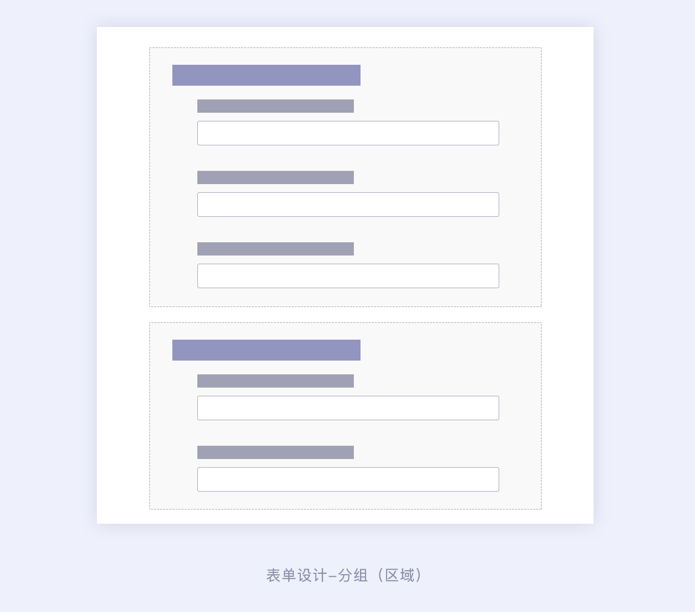 在B端設計中,一些復雜的表單會通過區域分組的形式排版設計,可以將一個表單的信息通過信息的關聯關系劃分不同的區域形成小組信息,這樣有利于信息的歸類以及信息的填寫。用戶在看到復雜表單的時候不會被龐大的表單迷惑,可以更好的找到表單字段,也可以讓用戶填寫表單更有秩序、更清晰。區域分組的使用場景,一般也是針對復雜表單且具有強相關的信息關系。