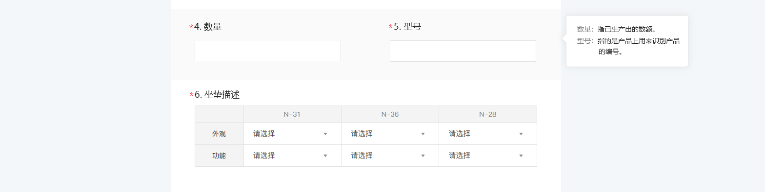 如果幫助文字更適用于一組相關輸入框、而不是單個輸入框,自動即時幫助同樣有用。 例如:觸發“數量”“型號”這一行,會自動高亮顯示每組信息的相關幫助信息。