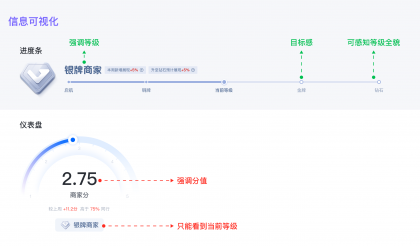 我們要強化商家的等級感知,通過視覺和交互引導等方式,強化商家對等級感知的重要性和影響。
