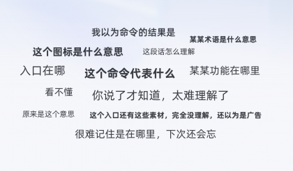 群核科技下產品正是這樣的特點,以酷家樂云設計工具為例,系統交互結合各行業垂類場景,各種命令、操作、引導、畫面控制等信息的表達很容易讓用戶疑惑。