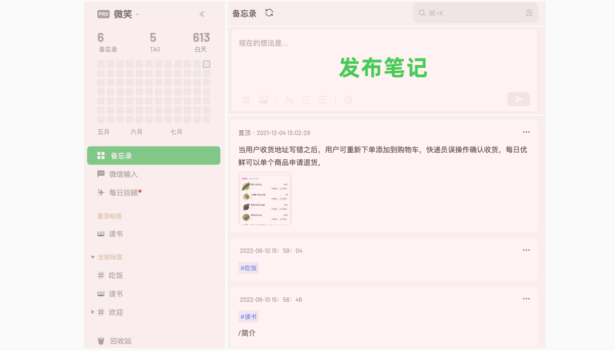 各平臺基本都有自己獨立的設計體系,有自己定義的組件和組件庫,學習組件要了解它分為基礎組件和業務/高級組件兩種類型。基礎組件是一種底層組件,例如輸入框、按鈕、單選框;其特點是比較獨立單一,通用性很強,適應各種業務場景;業務組件是一個基礎組件集合而成的大組件,也可以叫高級組件,是復合型的區塊組件,主要是針對解決業務問題;如下截圖是flomo筆記用用的網頁版本,以它的首頁為例;頁面按照左右結構類型區分,可以定義為兩個大的業務組件,由淺入深,可以再細分,得到再定義更多的業務組件,這里,我以“發布筆記”的組件具體說明下,它是怎么組成來解決業務問題的;首先我們拆解下組成部分:文本內容,工具按鈕(添加標簽和圖片、文本編輯、快速引用等三種類型),發布按鈕。用戶發布筆記的行為主要為文字輸入-內容編輯-發布完成;結合用戶行為和組件設計,解決了用戶輸入文本內容,給筆記歸納,增加圖片,修改文本樣式,快速引用,最終進行發布的問題。產品在迭代過程中,我們會發現更多的需求,業務組件就要通過再優化幫用戶解決實際問題。