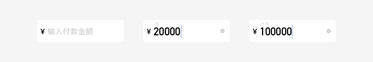 無金額輸入時,輸入框能給予用戶提示,這是比較常見的輸入框組件設計,預置提示文本;