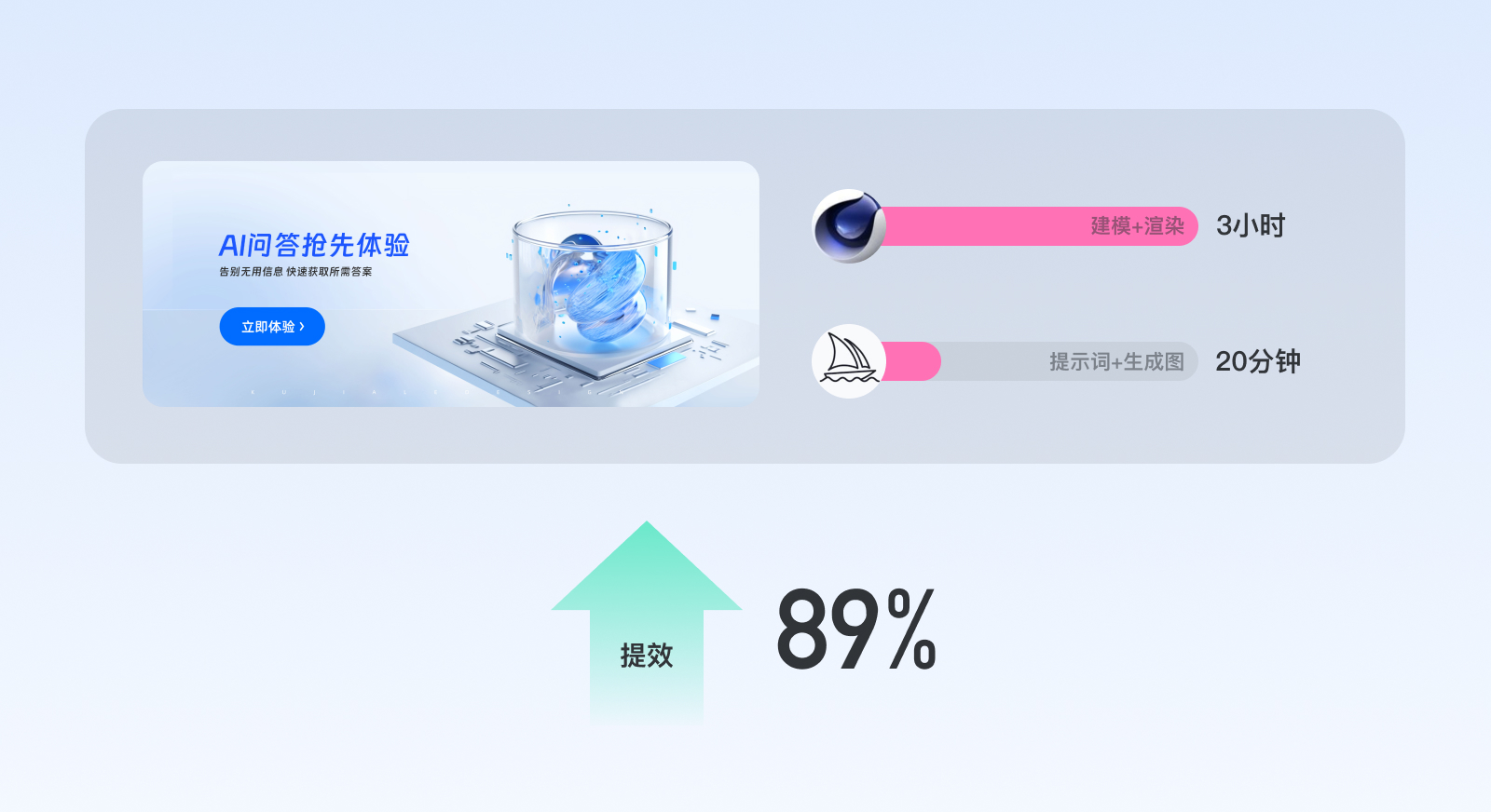 相比C4D做一個(gè)素材,可以大大提升出圖效率,這種與AI協(xié)作的形態(tài),市面上也是最多的,本質(zhì)是增強(qiáng)設(shè)計(jì)師產(chǎn)出的效率。