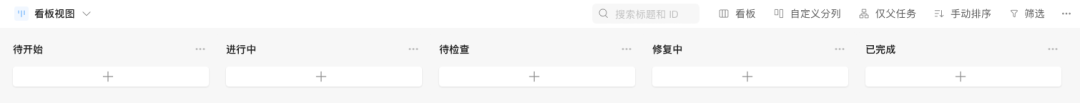 在看板工具中創建待開始、進行中、待檢查、修復中、已完成5個步驟,然后開始在待開始內創建相關的任務卡片。