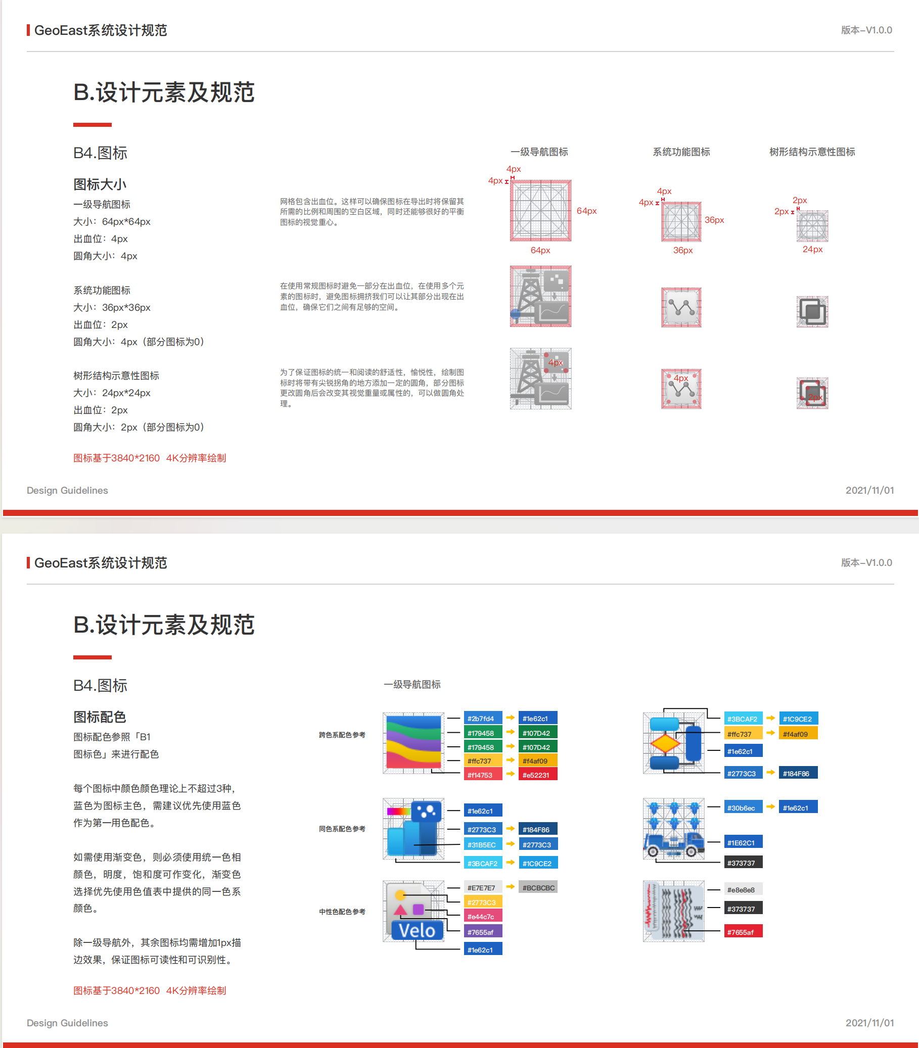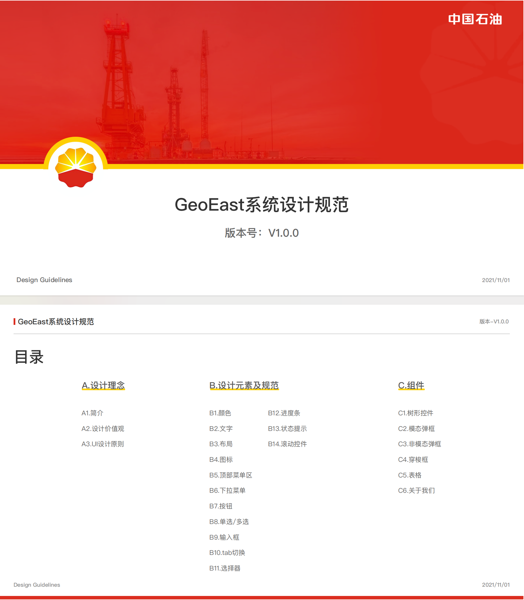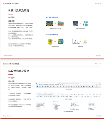下圖是藍(lán)藍(lán)設(shè)計(jì)給中國(guó)石油設(shè)計(jì)界面和圖標(biāo)后,制定的UI規(guī)范。