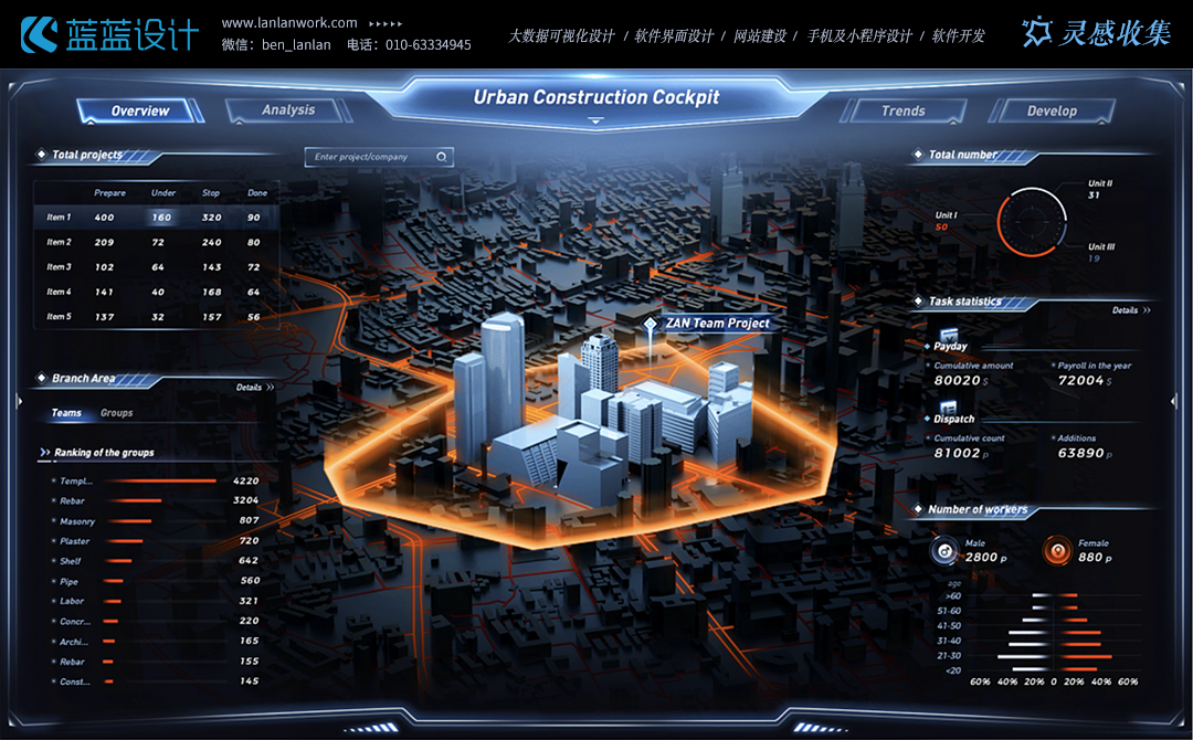 大屏界面的核心價(jià)值在于其強(qiáng)大的數(shù)據(jù)展示能力。因此,數(shù)據(jù)可視化設(shè)計(jì)是大屏界面設(shè)計(jì)的核心內(nèi)容之一。設(shè)計(jì)師需要運(yùn)用圖表、地圖、儀表盤(pán)等多種可視化手段,將復(fù)雜的數(shù)據(jù)轉(zhuǎn)化為直觀、易懂的視覺(jué)元素。通過(guò)色彩、形狀、大小等視覺(jué)屬性的變化,展示數(shù)據(jù)的趨勢(shì)、對(duì)比和異常點(diǎn),幫助用戶(hù)快速理解數(shù)據(jù)背后的故事。