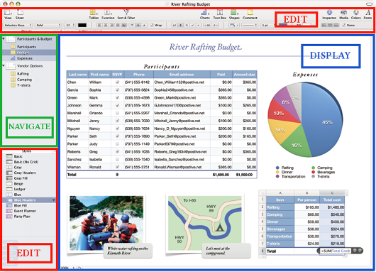 但是不要停在大要素。 應用相同的頁面區域也發現分組原則。關注工具欄上的圖標怎樣分類為小的,有意義的組,例如 “表格工具” (表格,功能,排序單元)和 “插入工具” (圖表、輸入框、形狀、評論),個別的會包括一些媒體按鈕在插入工具中。