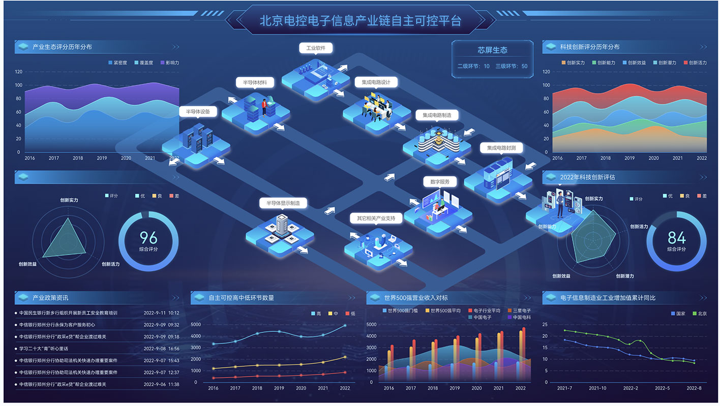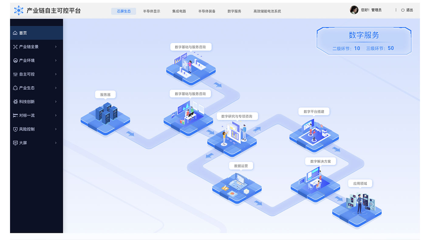 項目背景:產業(yè)鏈自主可控平臺是指一個集成了多方參與者的平臺,旨在實現(xiàn)對整個產業(yè)鏈的自主控制和管理。該平臺通過整合各個環(huán)節(jié)的資源、技術和信息,以實現(xiàn)產業(yè)鏈的協(xié)同發(fā)展和自主創(chuàng)新。過建立產業(yè)鏈自主可控平臺,可以促進各參與者間的協(xié)同合作,加強產業(yè)鏈的自主控制能力,提高整體競爭力和創(chuàng)新能力,實現(xiàn)更加可持續(xù)和穩(wěn)定的發(fā)展。蘭亭妙微團隊首先設計了一套高度定制化的動態(tài)數據可視化儀表板。