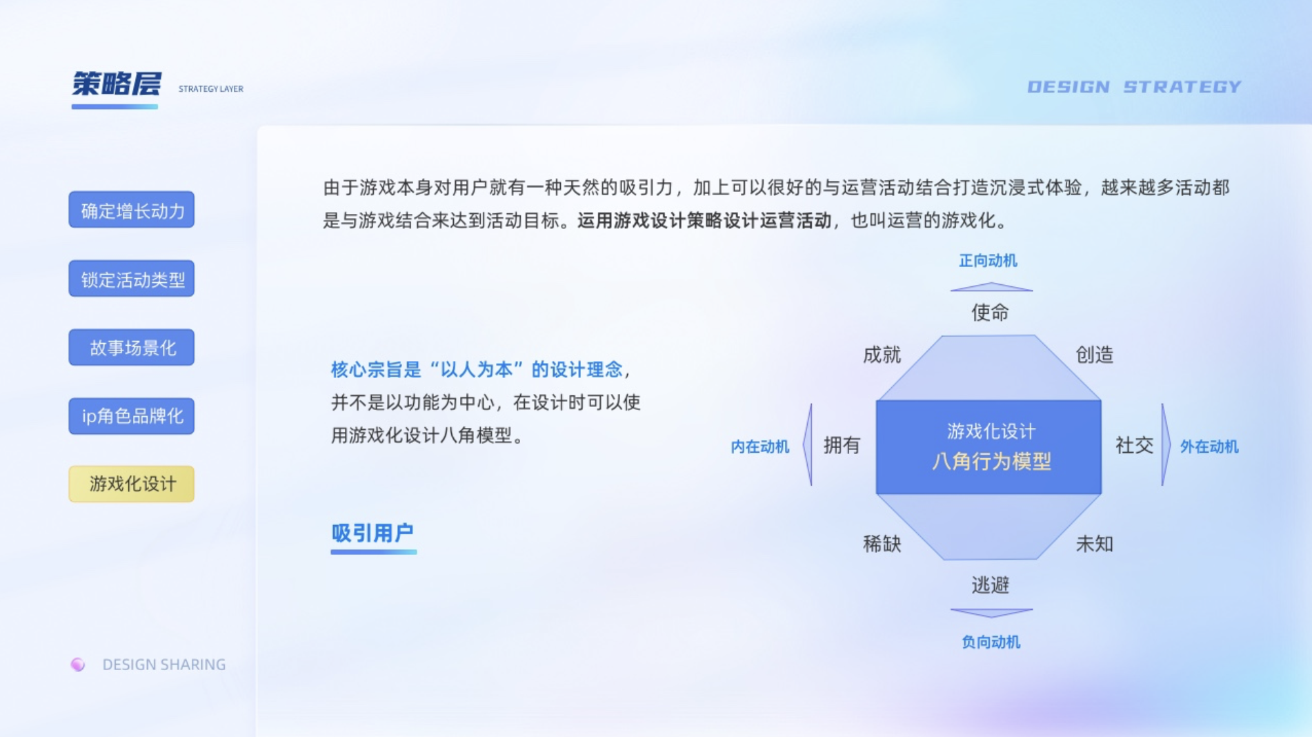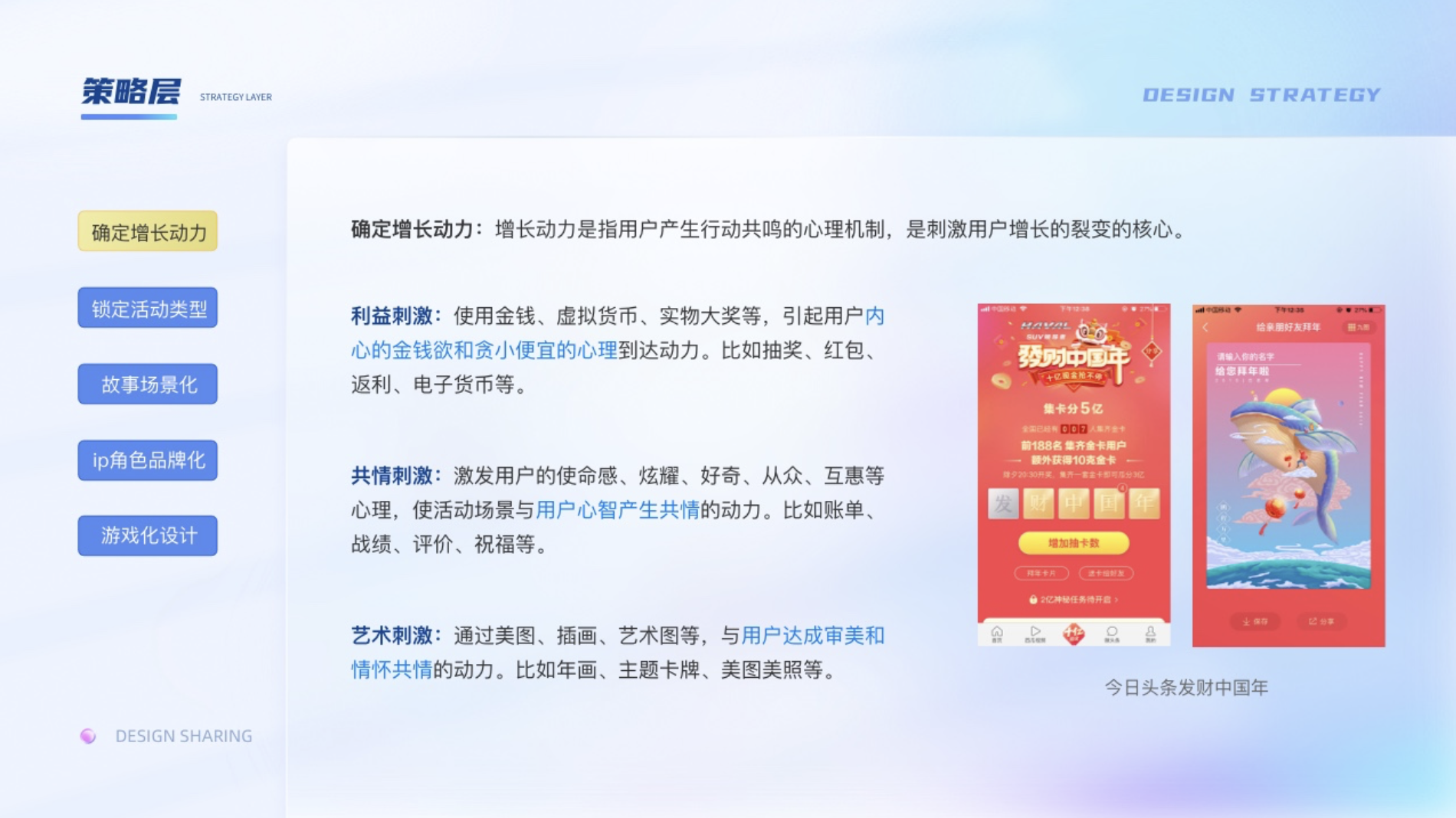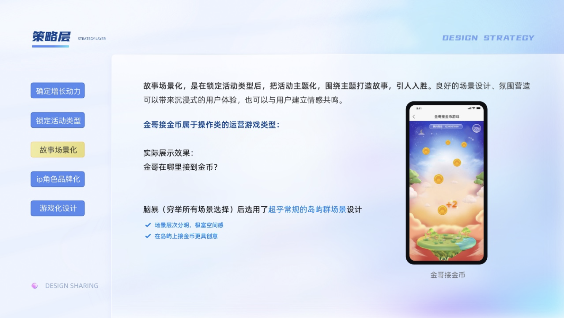 策略層:1、確定增長動力;2、鎖定活動類型;3、故事場景化;4、IP角色品牌化;5、游戲化設計