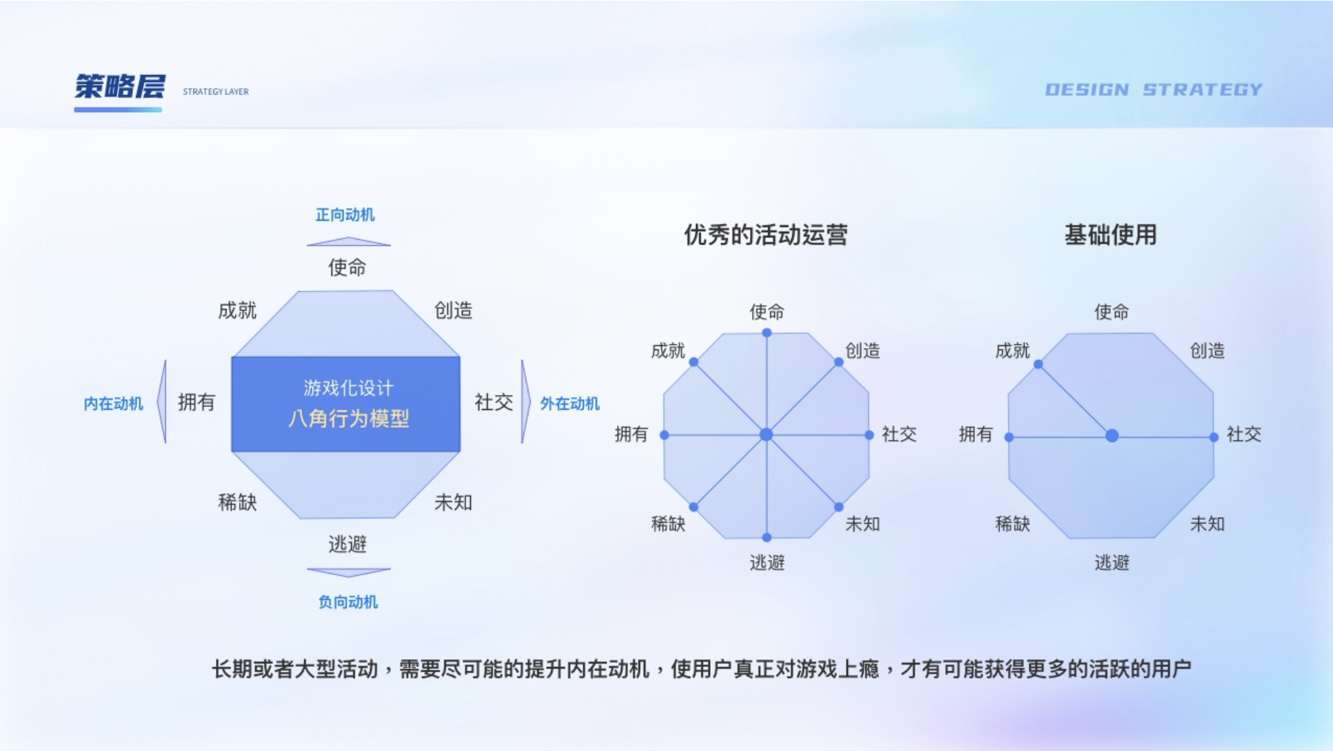 由于游戲本身對用戶就有一種天然的吸引力,加上可以很好的與運營活動結合打造沉浸式體驗,越來越多活動都是與游戲結合來達到活動目標,也叫運營的游戲化。核心宗旨是“以人為本”的設計理念,并不是以功能為中心,在設計時可以使用游戲化設計八角模型。