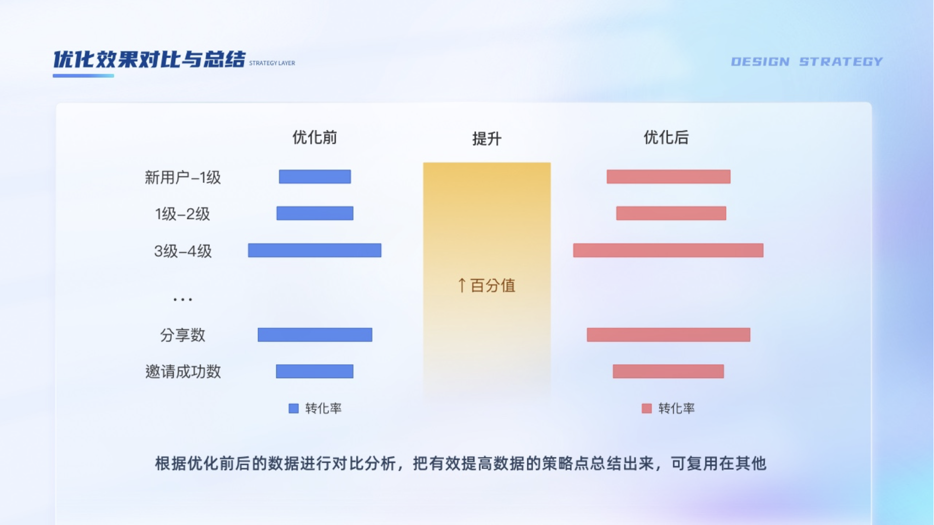 根據優化前后的數據進行對比分析,把有效提高數據的策略點總結出來,可復用在其他項目。