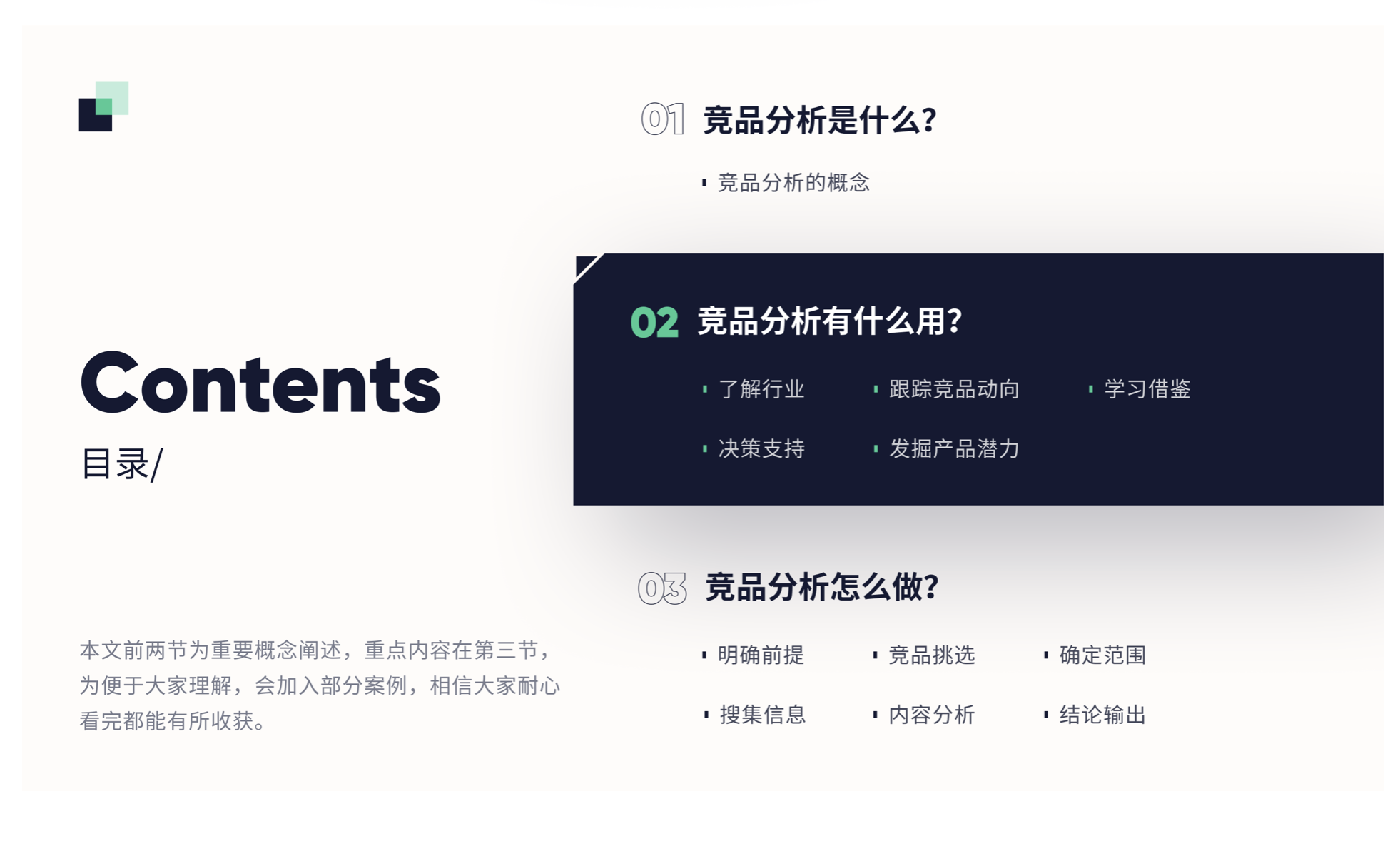 • 領導:重點關注競品的背景、定位分析、策略分析。