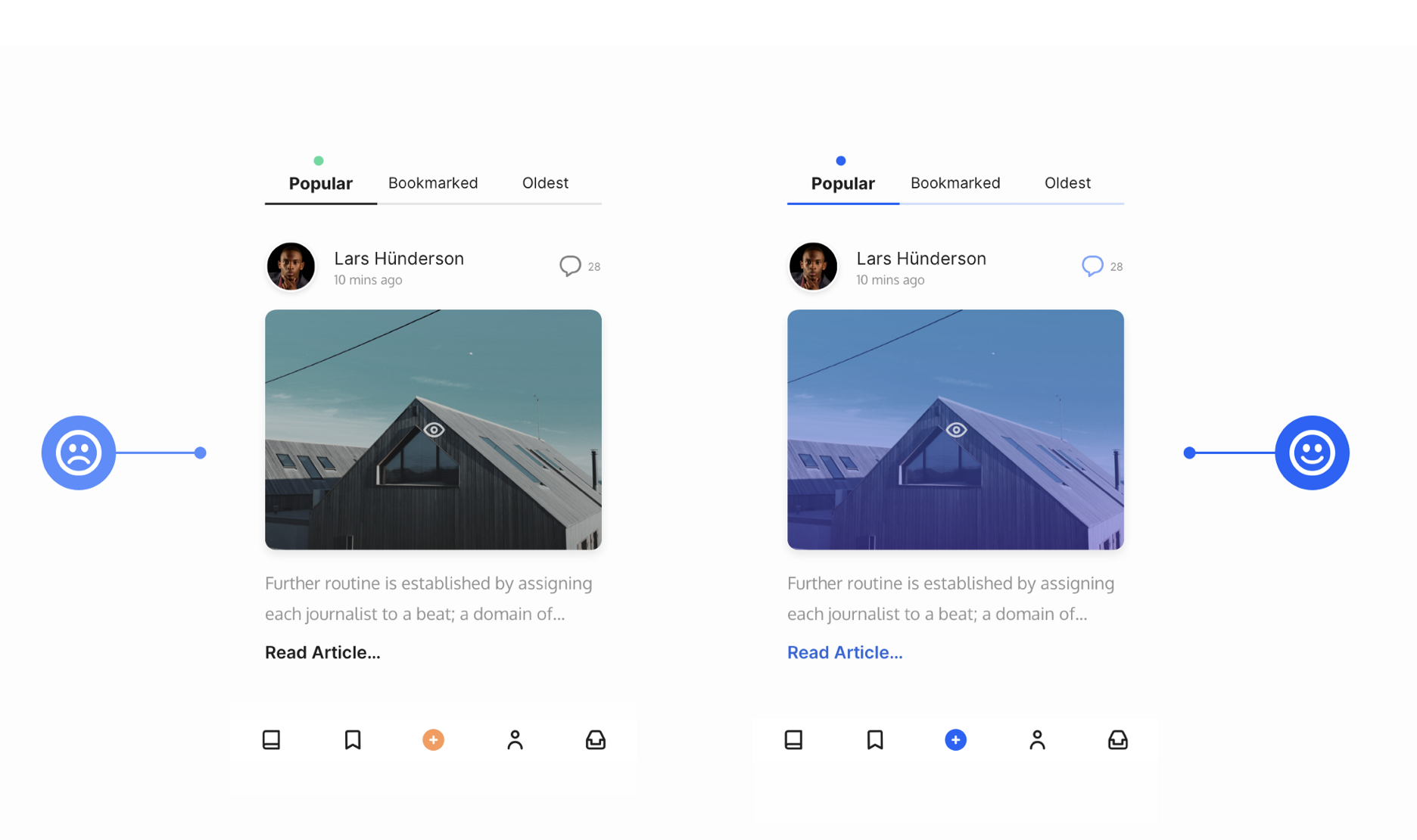 設計時無需用多種顏色填充,若項目允許,只需使用固定色板,選擇一種基礎色,再通過調整色調和顏色深淺,就能為設計增加一致性。