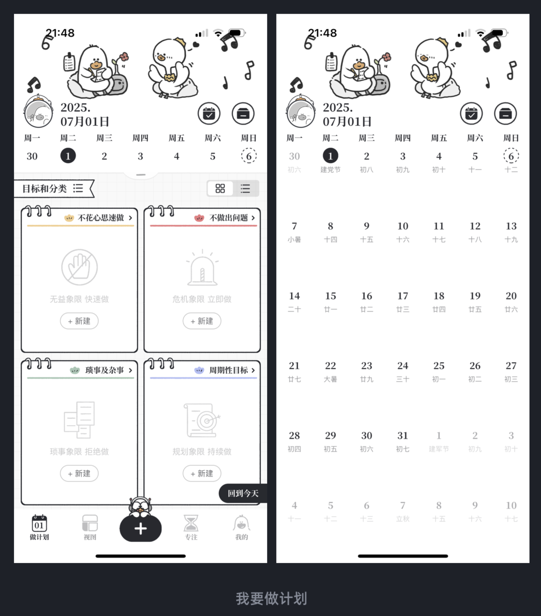 “我要做計劃” App 不僅日歷下拉展開 / 收起的交互便利,還在左右切換時模擬翻頁聲效,搭配涂鴉式設計風格,增強了場景代入感。image.png