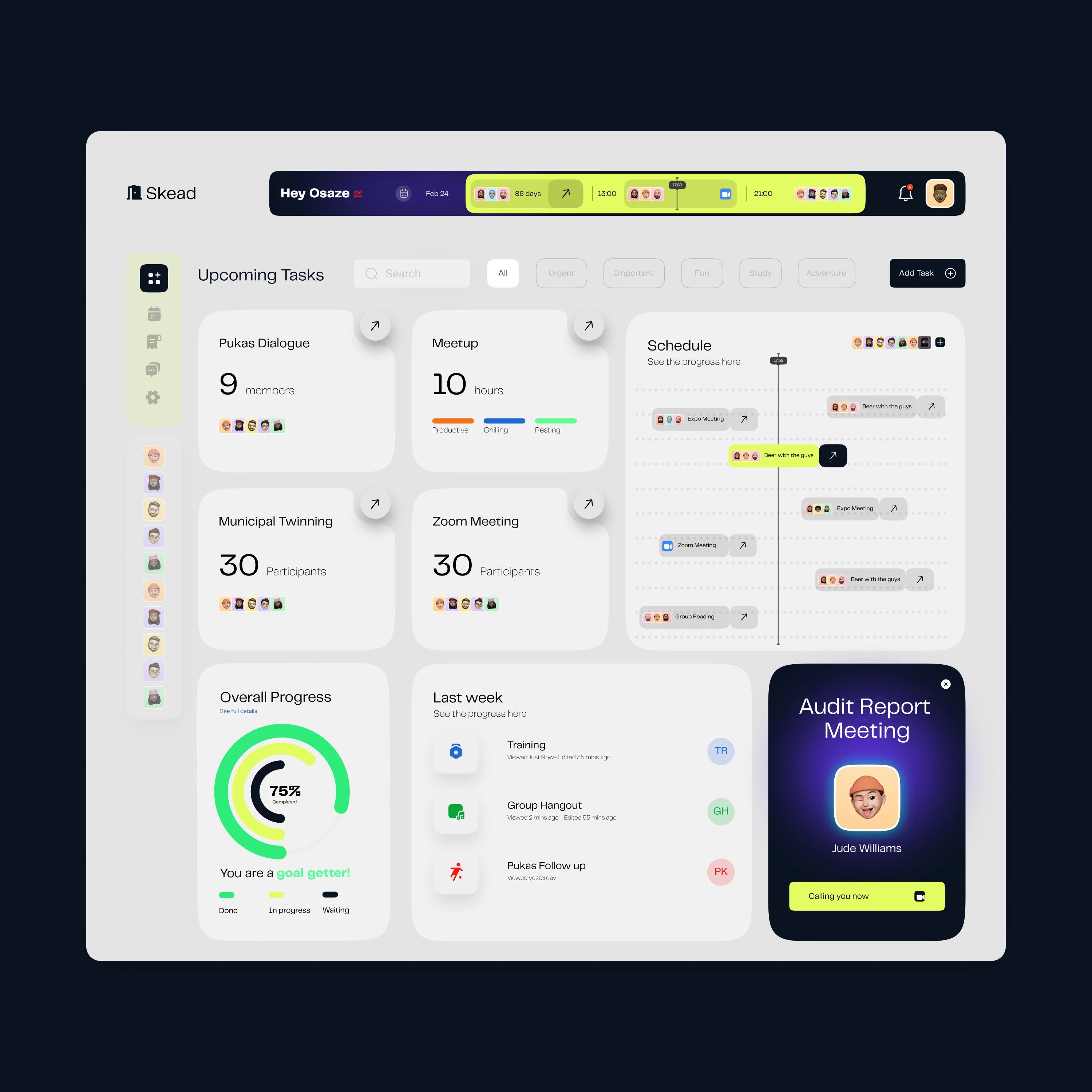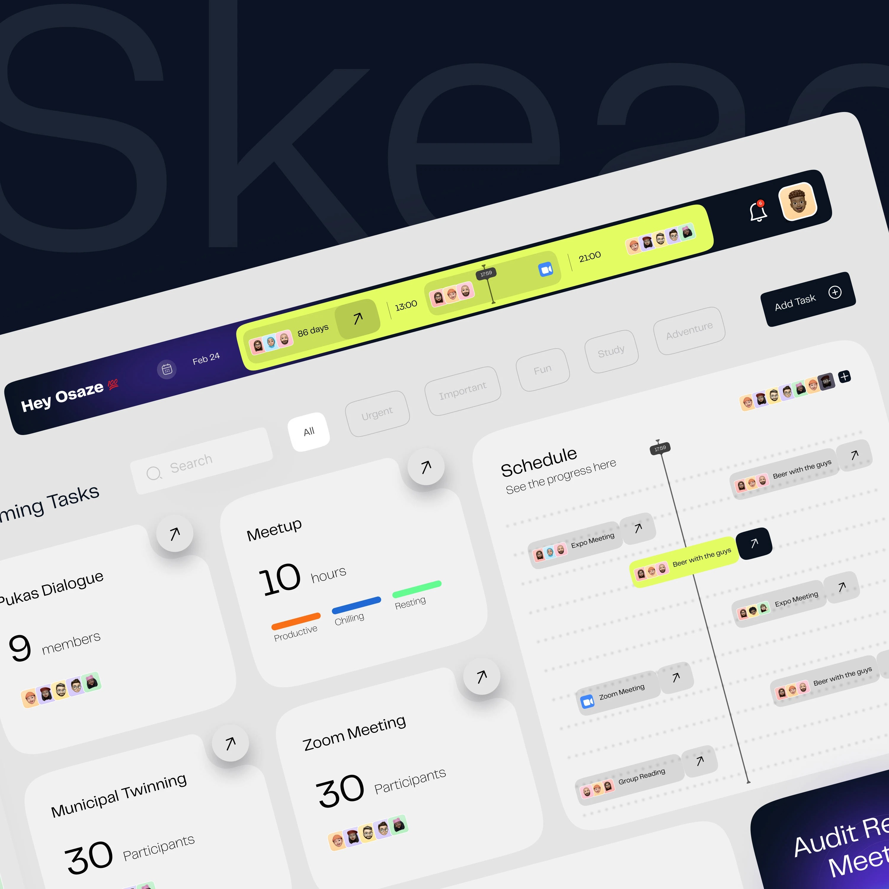 模塊化卡片布局 —— 信息拆分為獨(dú)立卡片,任務(wù)、進(jìn)度、日程分區(qū)清晰。