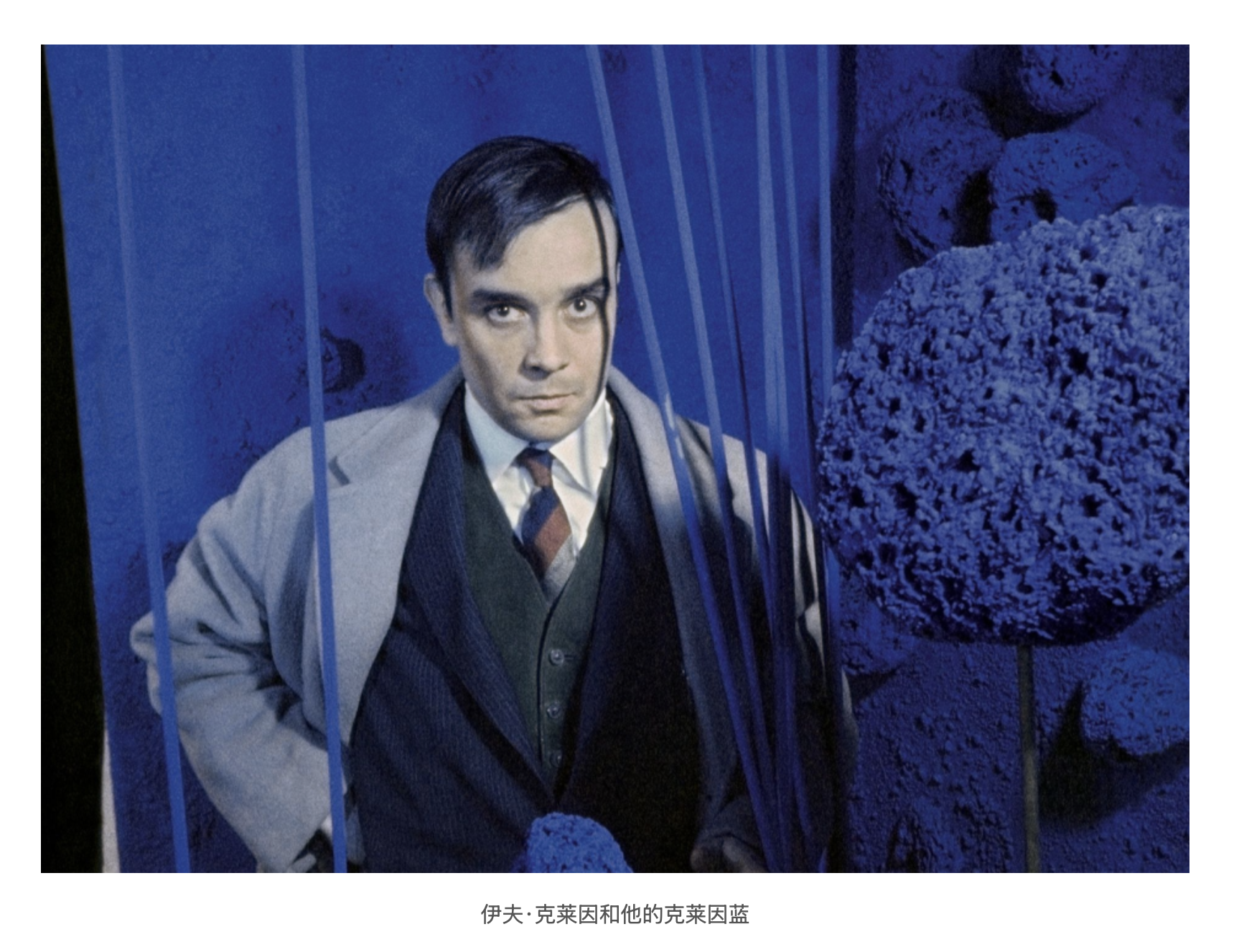 藍色的另一重消極意象,是疏離與冰冷。看見紅色會聯想到火焰的溫暖,而看見藍色,便會不自覺想到湖泊、冰塊、冷水等陰冷的事物。更有趣的是,自然界的大氣現象讓這份疏離感更甚 —— 物體距離我們越遠,視覺上便會越偏向藍色,遠處的山脈總是泛著淡淡的藍,這份視覺體驗,讓藍色的疏離感刻入了人們的感知。