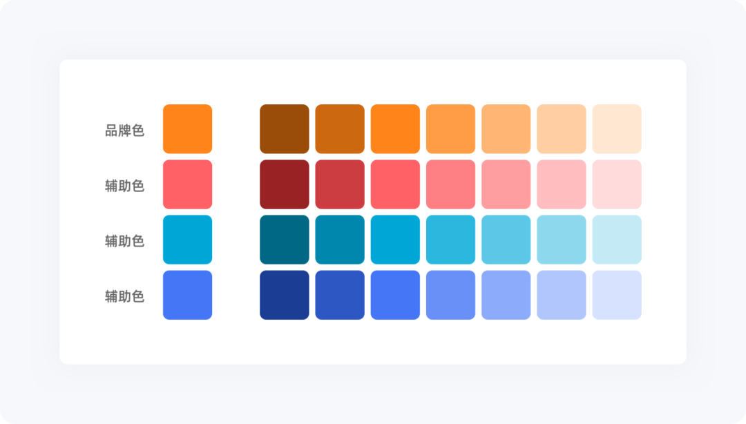 顏色是產(chǎn)品設計風格的基礎,核心是按功能屬性分類定義,形成標準化色庫: