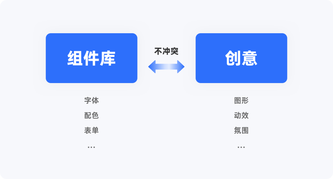部分設計師認為 “拼組件會扼殺創(chuàng)意”,實則是對組件庫的誤解:組件庫解決的是復用率高的重復性設計需求(如字體、配色、表單、基礎控件),而在圖形設計、動效表現(xiàn)、背景氛圍、視覺亮點等方面,設計師仍有極大的創(chuàng)意發(fā)揮空間。