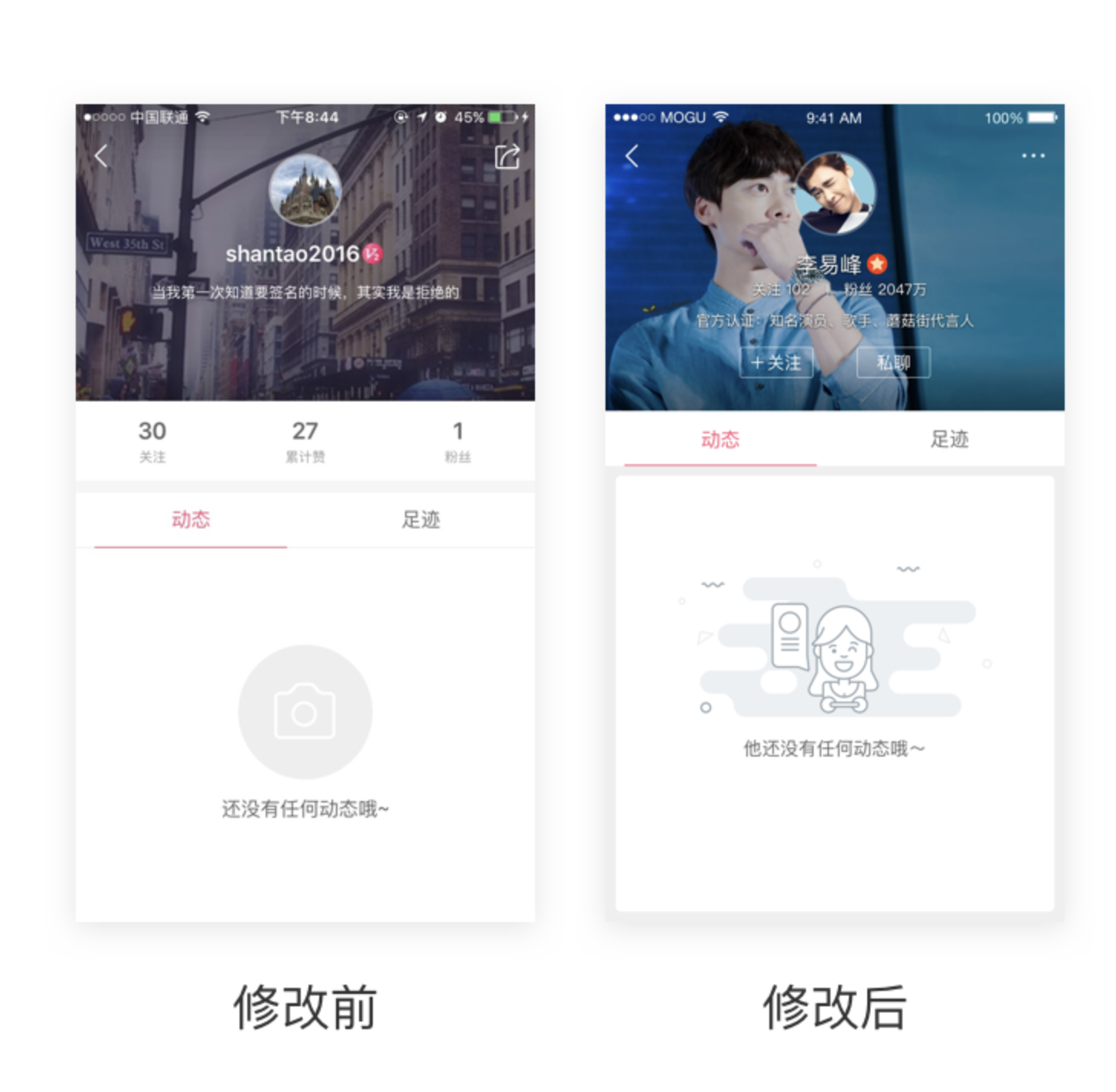 當下的空頁面設計,正朝著趣味化、色彩豐富化的方向發展,設計師通過多樣化的設計手法,讓產品即便在無內容的狀態下,也能給用戶帶來良好的視覺感受。蘑菇街在 2016 年 Q2 季度對旗下產品的空頁面進行了系統改版,摒棄了原本以圖標為主的設計形式,采用趣味性插畫替代,讓空頁面更飽滿,既提升了視覺趣味性,也讓用戶在面對空狀態時擁有更愉悅的體驗。