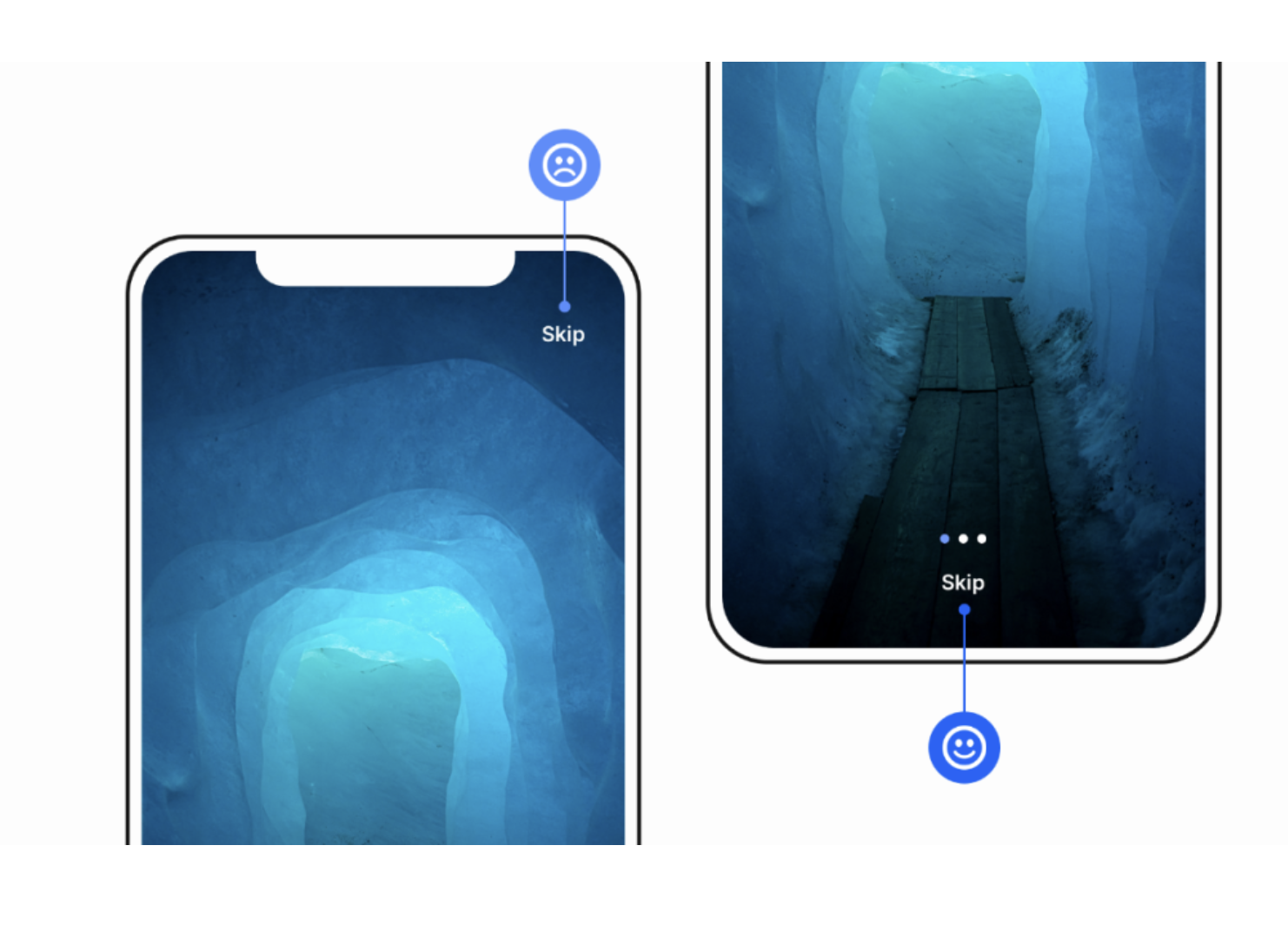 新手引導、功能引導是產品觸達用戶的重要環節,但強制的引導流程極易引發用戶的抵觸心理。想要提升引導環節的用戶體驗,核心是賦予用戶選擇的權利,將 **“跳過” 按鈕 / 鏈接 ** 放置在用戶易觸達、視覺易發現的位置,讓用戶可根據自身需求隨時跳過引導。
