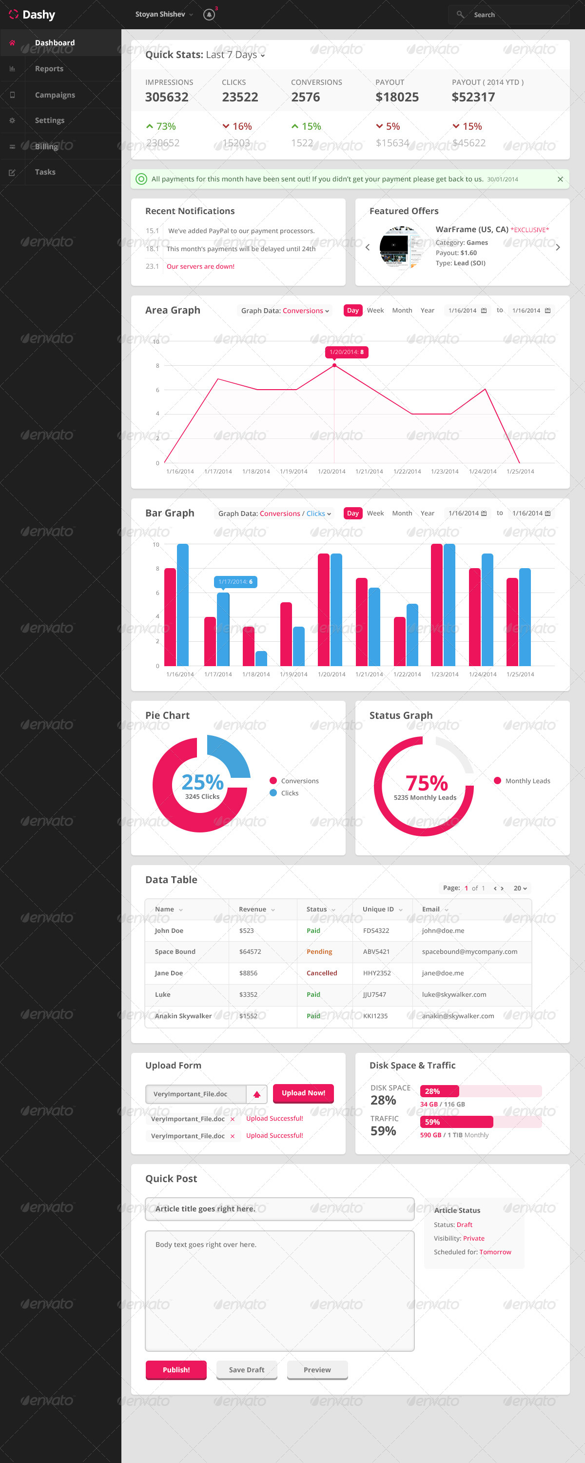 藍藍設計是一家專注而深入的設計公司,致力于提供有效、經典卓越的設計,在工作中,目前有很多客戶選擇購買了Bootstrap ui的框架,客戶們選擇Bootstrap的原因是因為它的框架中許多組件已經寫好,js等很方便直接引用,程序員們只需直接用就可以,可以把工作的重心放在后臺程序的開發上。但是Bootstrap ui只是提供了各種元素,無法直接使用,需要進行二次設計和開發。藍藍設計做了許多這樣的工作,包括整合客戶的業務和需求重新設計頁面的風格和布局,最后切圖修改Bootstrap ui的css,這里是我們工作前收集的國外各種風格扁平化后臺管理界面,做成系列欣賞,與大家分享~~~~