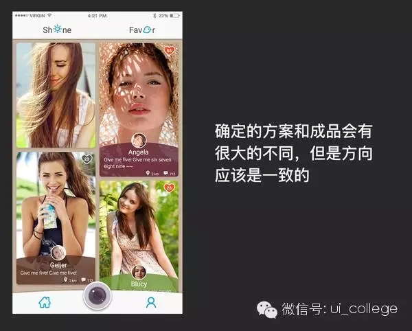 這些問題會扯出很多主觀表達,設計師同學一邊聽大家討論一邊把聽到的關鍵詞記在黑板上。比如我們是想做年輕人的視頻社交產品,我們就會記下諸如好 玩、熱情、豐富、可愛、二次元等各種情感關鍵詞,這都是團隊成員希望這個產品成為的樣子。但是在做視覺設計的時候收集的目標不能太多,于是征求大家建議 后,我們把優先級不高的去掉,把重復的感受合并,最后確認了我們產品的情感關鍵詞是:陽光、溫暖、年輕。也就是說,接下來我們做App的視覺設計,就應該 做出陽光、溫暖和年輕的感覺。