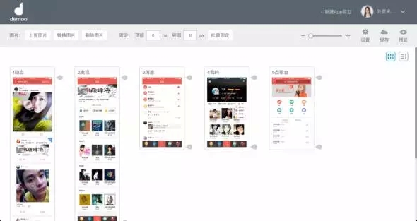 Demoo是基于web設計搭建的一款在瀏覽器內進行可視化操作的工具。通過上傳平面稿件,用手勢或觸點熱區的方式把界面關系連接起來,加入連接轉場,輸出一份仿真APP的、可體驗操作的設計方案,滿足在電腦、會議投影現場及手機上體驗操作。點擊這里可查看更詳細介紹:《為移動端方案設計演示而生的DEMOO》