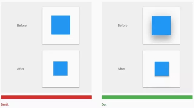 當用戶無法確定控件或者元素是否可以點擊,或者是否已經被點擊了,他們就越是需要點擊之后的反饋給予心理安慰。一個元素的高度變化應該帶來相應的陰影變化:
