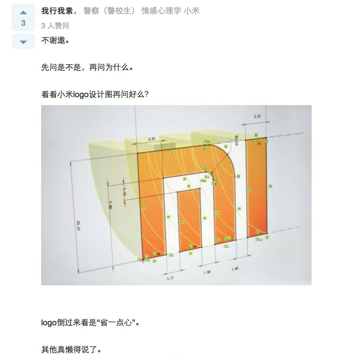 即便小米的LOGO當(dāng)年剛發(fā)布的時(shí)候還是有抄襲或是撞車嫌疑,但從截圖回復(fù)來看,小米公司內(nèi)部還是對這個(gè)LOGO認(rèn)可, 但我不覺得在設(shè)計(jì)之初,設(shè)計(jì)師就知道他設(shè)計(jì)的LOGO倒過來還能扯上“心”這個(gè)層面的意思。