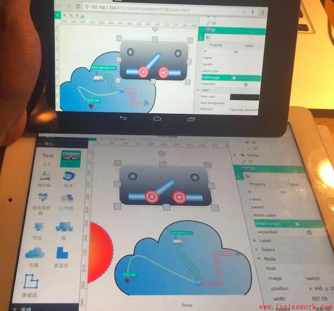 HT 提供了各種豐富的通用組件,以及復(fù)雜的拓?fù)鋱D編輯交互插件 http://www.hightopo.com/guide...,用戶分分鐘可以快速開(kāi)發(fā)出各種各樣的編輯器工具。入門手冊(cè)中也有個(gè) http://www.hightopo.com/guide... 簡(jiǎn)單的編輯器例子,教用戶如何自定義創(chuàng)建節(jié)點(diǎn)、連線和多邊形的示例教材,學(xué)習(xí)自定義拓?fù)鋱D交互可從此例子入手。