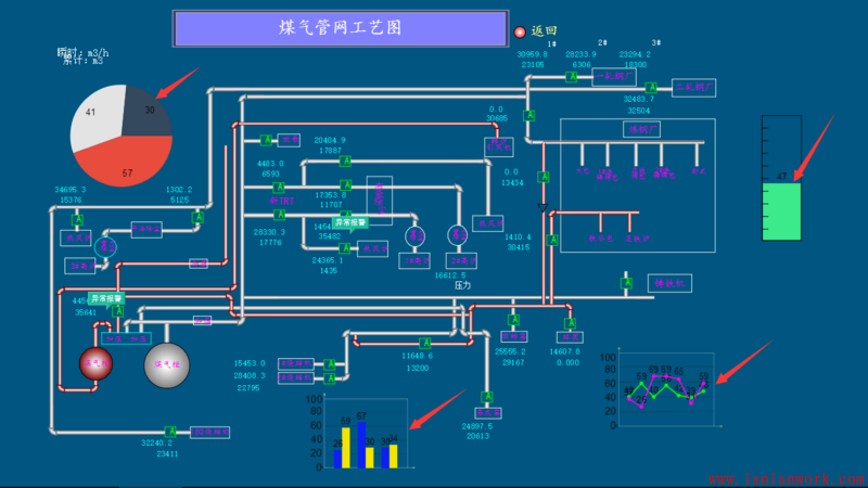 另外 HT 的矢量?jī)?nèi)置了 Chart 類型,矢量?jī)?nèi)置的 Chart 不同于傳統(tǒng)獨(dú)立的 Chart 組件,傳統(tǒng)的 Chart 是獨(dú)立的視圖 DOM 組件,但 HT 的拓?fù)涫?Cavans 方式繪制,因此沒(méi)法實(shí)現(xiàn) Chart 組件和普通圖元的不同層次融合顯示,但矢量的 Chart 類型倒是完美的實(shí)現(xiàn)了這樣的融合,很多工控應(yīng)用的客戶會(huì)將矢量 Chart 與拓?fù)鋱D元素融合一體,可參見(jiàn)《基于HT for Web的Web SCADA工控移動(dòng)應(yīng)用》http://www.hightopo.com/blog/... 一文中 HT 的 Web SCADA 應(yīng)用案例