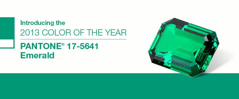 色彩公司pantone 最近選擇了綠寶石色(emerald17-5641 )作為2013 年的年度顏色,在他們的描述中,綠寶石色 生動,光芒四射,有魅力…… 是一種代表了優雅和美麗的顏色,加強了我們個人的自然存在感,帶給我們平和心態