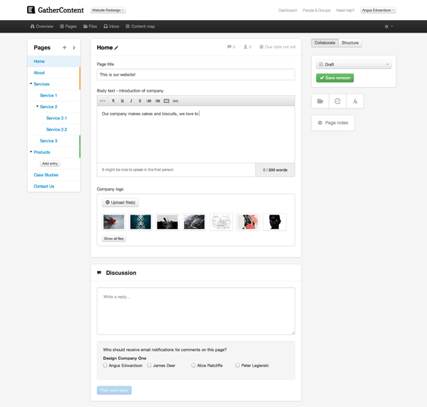 Gather Content 是一款很棒的內容編輯工具,你可以參考他們在信息管理、組織和呈現方面的一些做法。