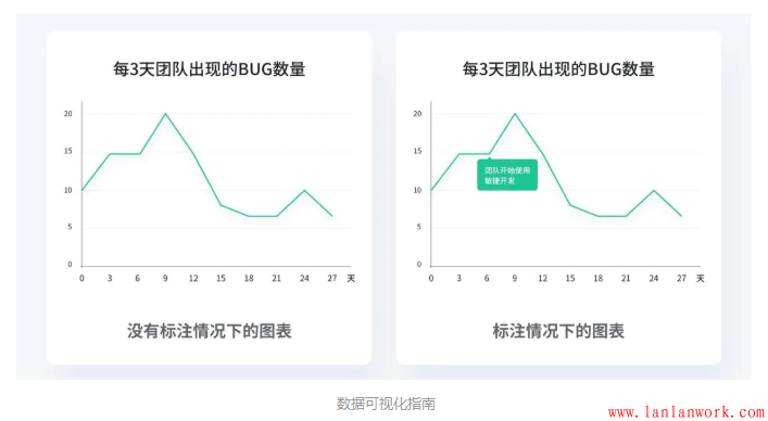 數據產品不要試圖去掩蓋問題,而要反映真實數據,暴露問題,并且和用戶一同解決。比如對數據閾值進行監測,預警線就是很友好的可視化方式。