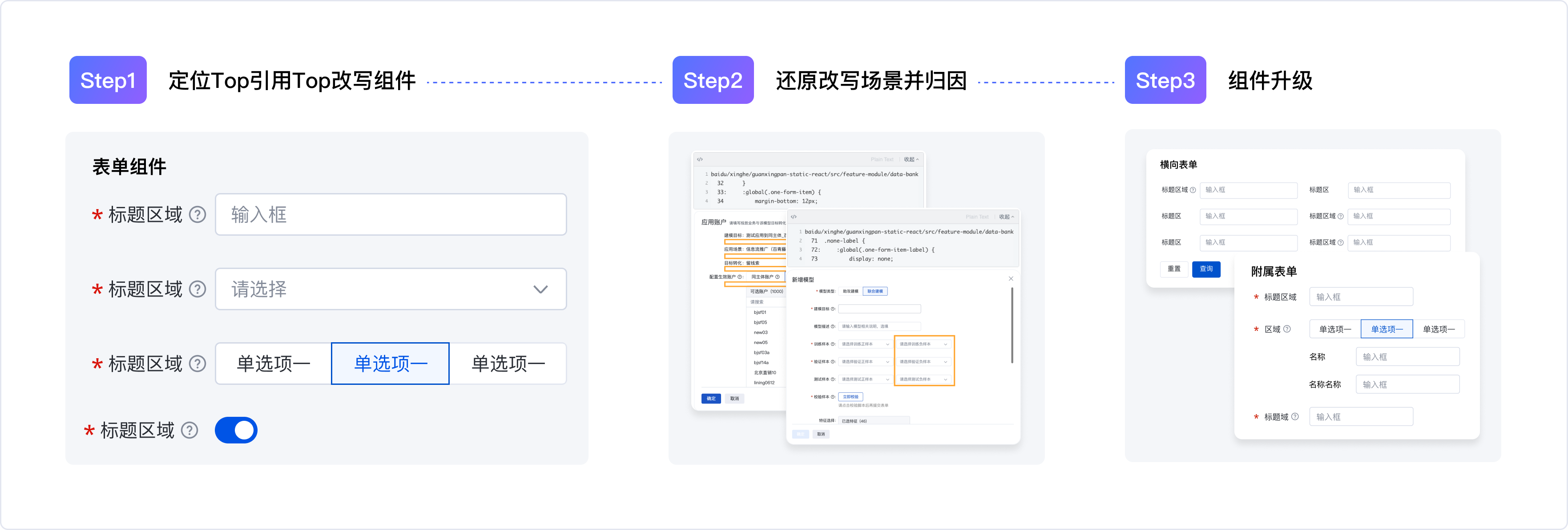 3.針對不同原因導出解決手段進行組件升級:最后,根據上述問題,逐一進行設計和研發升級。升級后的表單組件再被業務方引用時,免去了改寫的成本,平均單次引用可節省約1h的研發耗時。