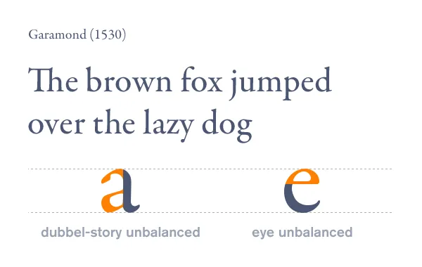 Garamond是法國傳統(tǒng)風格,始于1530年,它對比劃的幾何比例和平衡有著超前思考,其中的字體粗細交錯帶來了動態(tài)的平衡和易辯性。