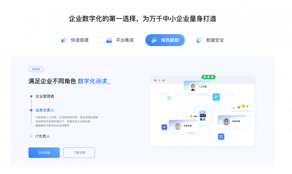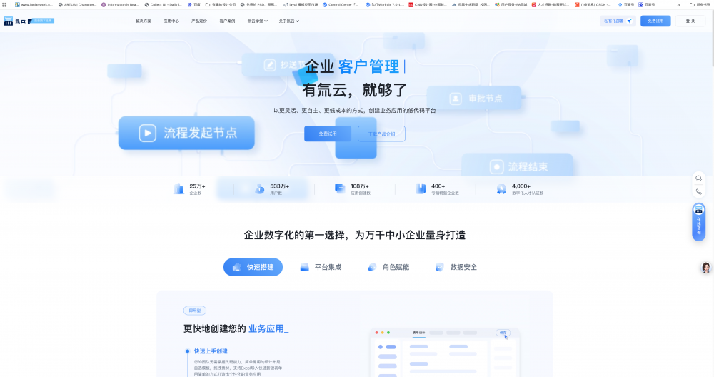• 用案例 / 故事建立信任:像案例里的 “用戶故事”“客戶案例” 板塊,用真實人物 / 企業的使用場景(如 “35 歲地產人轉型”“云南建投數字化管理”),比單純的功能列表更有說服力。