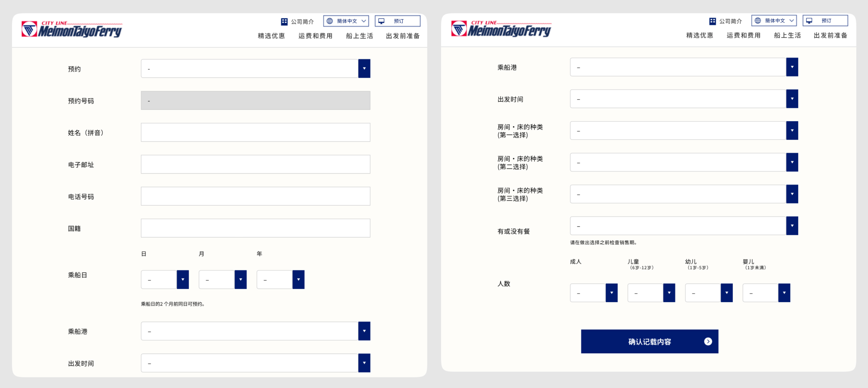這次案例是一個我最近在預定的船票預定服務,由一家叫名門大洋的渡輪服務公司提供。下面是對它預定的簡單介紹:
