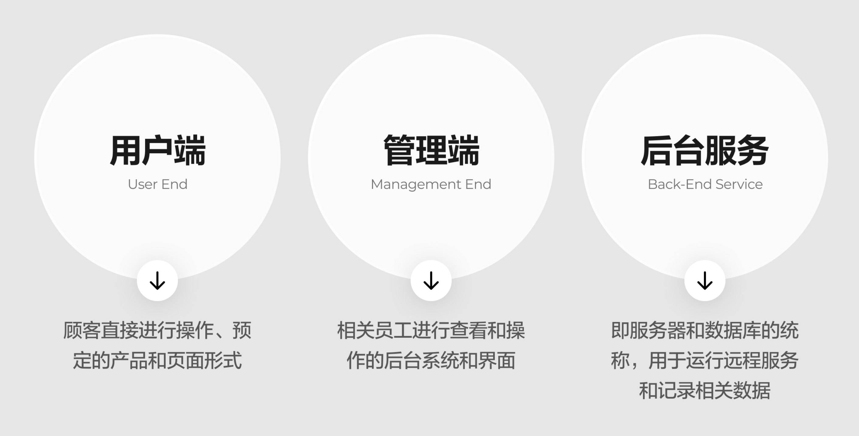 有了問題,下一步就是建立產品的框架,比如這個業務會涉及到多個端,產品就要先創建多個端的功能框架出來,包含的端可以簡化成下面三個: