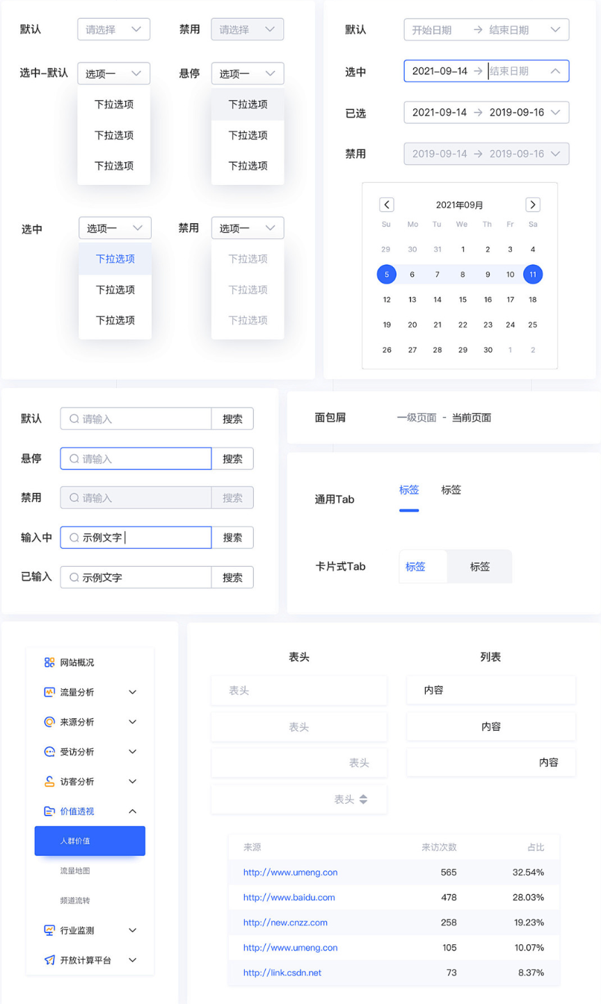 組件庫是將設計好的UI元素進行統一整理的地方,因為B端不同B端界面中有大量重復應用的設計元素,所以我們會這些元素進行匯總,存放到固定的位置方便后面復用,而不用每次都重新設計一遍。