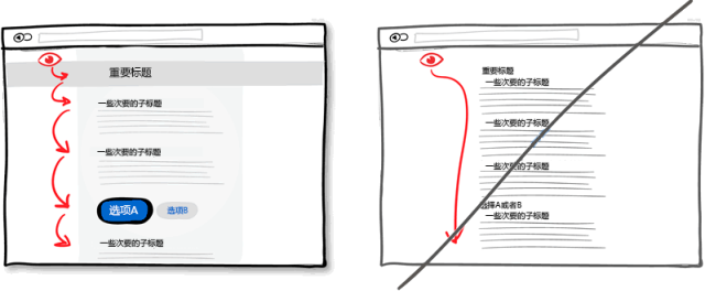 過多邊框會喧賓奪主。不用說,邊框確實在劃分區域進行版塊設置時有很大的作用,但同時其明顯的線條也會吸引走用戶的注意力。為了達到劃分版塊又不轉移用戶注意力的目的,在排版時可以將界面上不同區域的元素通過空白進行分組,用上不同的背景色,將文字對齊方式進行統一,還有就是為不同區域設置不同的樣式。當使用所見即所得的界面設計工具時,我們經常在界面上方便地拖出很多區塊來,這些區塊多了就會顯得雜亂無章。所以我們又會到處放些橫線來分界。一個更好的做法是將區塊垂直對齊,這樣做不會讓那些多余的線條來擾亂視覺。